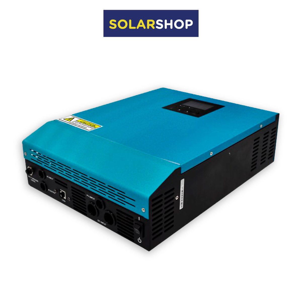 Es un inversor solar híbrido con una potencia nóminal de 5000VA a /4000W. Se compone de inversor, controlador solar, cargador de batería y sistema UPS. Es un inversor híbrido de alta tecnología. El equipo incorpora una pantalla LCD donde se puede visualizar el monitoreo del estado del sistema. Posee un botón para ajustar el estado de la pantalla y el modo de trabajo. Viene de fábrica con una configuración predeterminada desde la línea de producción para la red de energía pública. Cuando se corta la energía de la ciudad, cambia automáticamente al modo solar a una velocidad de transferencia entre 10 ms y 20 ms lo que permite tener un suministro de energía ininterrumpido.