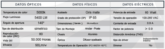 Lampara de anclaje en poste para una altura maxima de 3.5 metros, aplicadas para senderos y parques. Generando una iluminacion de amplio rango y gran potencia. Ensamblada con led philips y fuente de driver mewell LPC - 60-1750