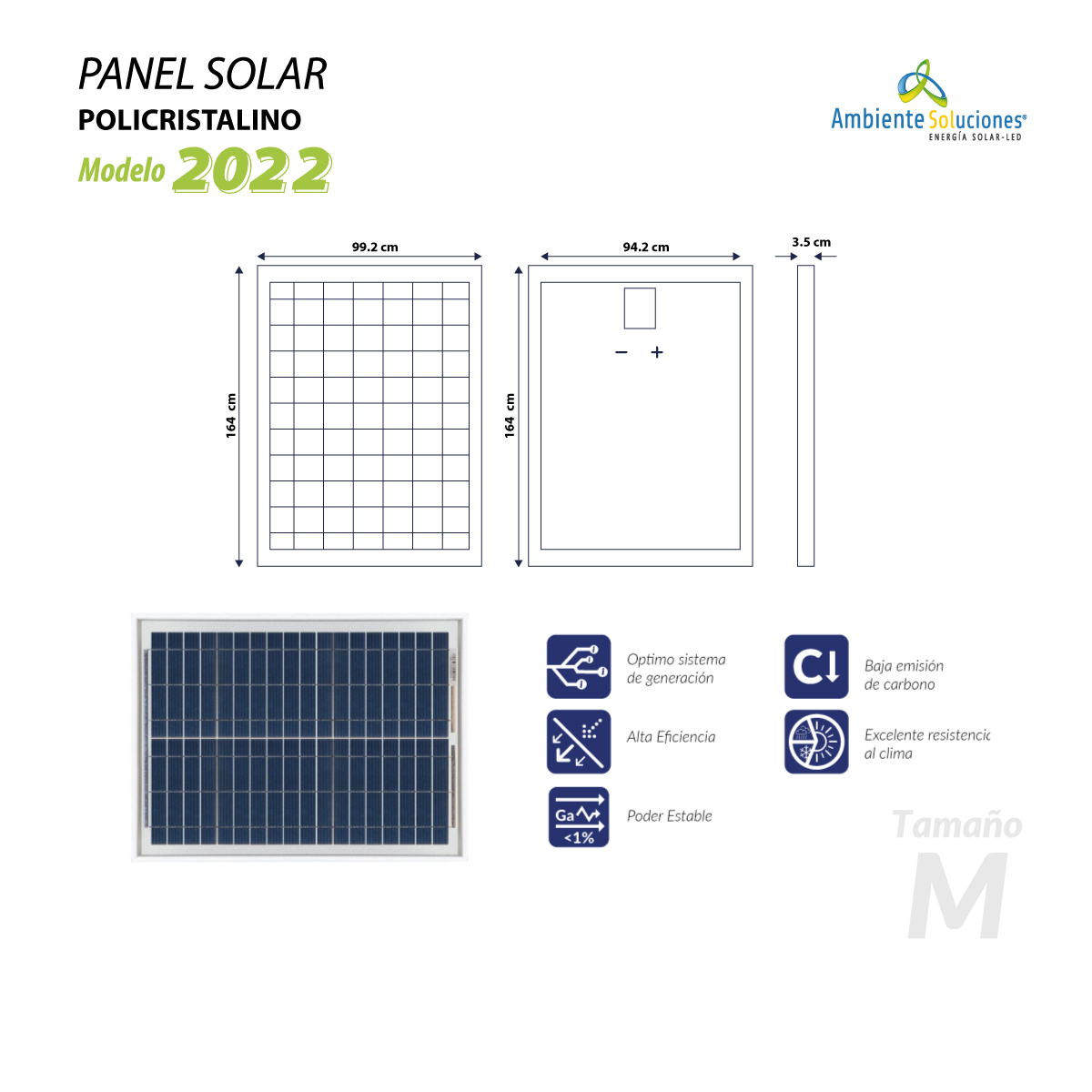 -Célula solar (cantidad / tipo / dimensiones / número de busbar): 60 / Policristalino / 15.675 x 15.675 cm /