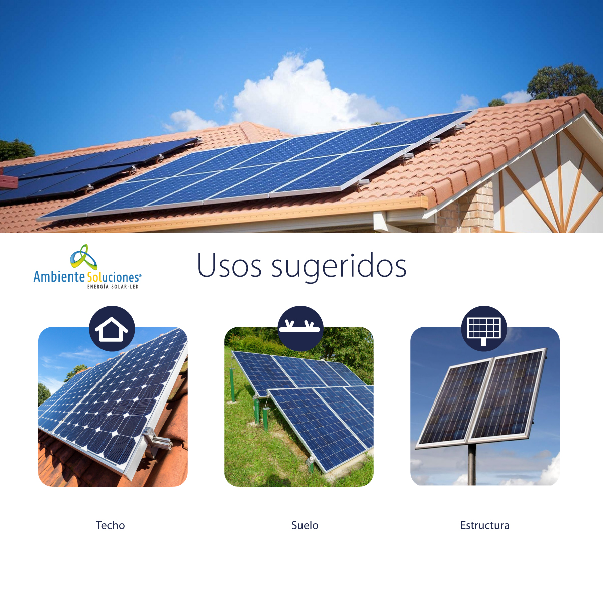 Nuestros Paneles Solares son elaborados con equipos de producción automatizados y celdas fotovoltaicas reconocidas a nivel mundial por su alta eficiencia. Ofrecemos un amplio rango en potencias de paneles solares que van desde 5Wp hasta 400Wp, para aplicaciones en sistemas desconectados y conectados de la red, sistemas de telecomunicación, sistemas de monitoreo de información y otros equipos industriales, sistemas de bombeo de agua y lámparas solares.