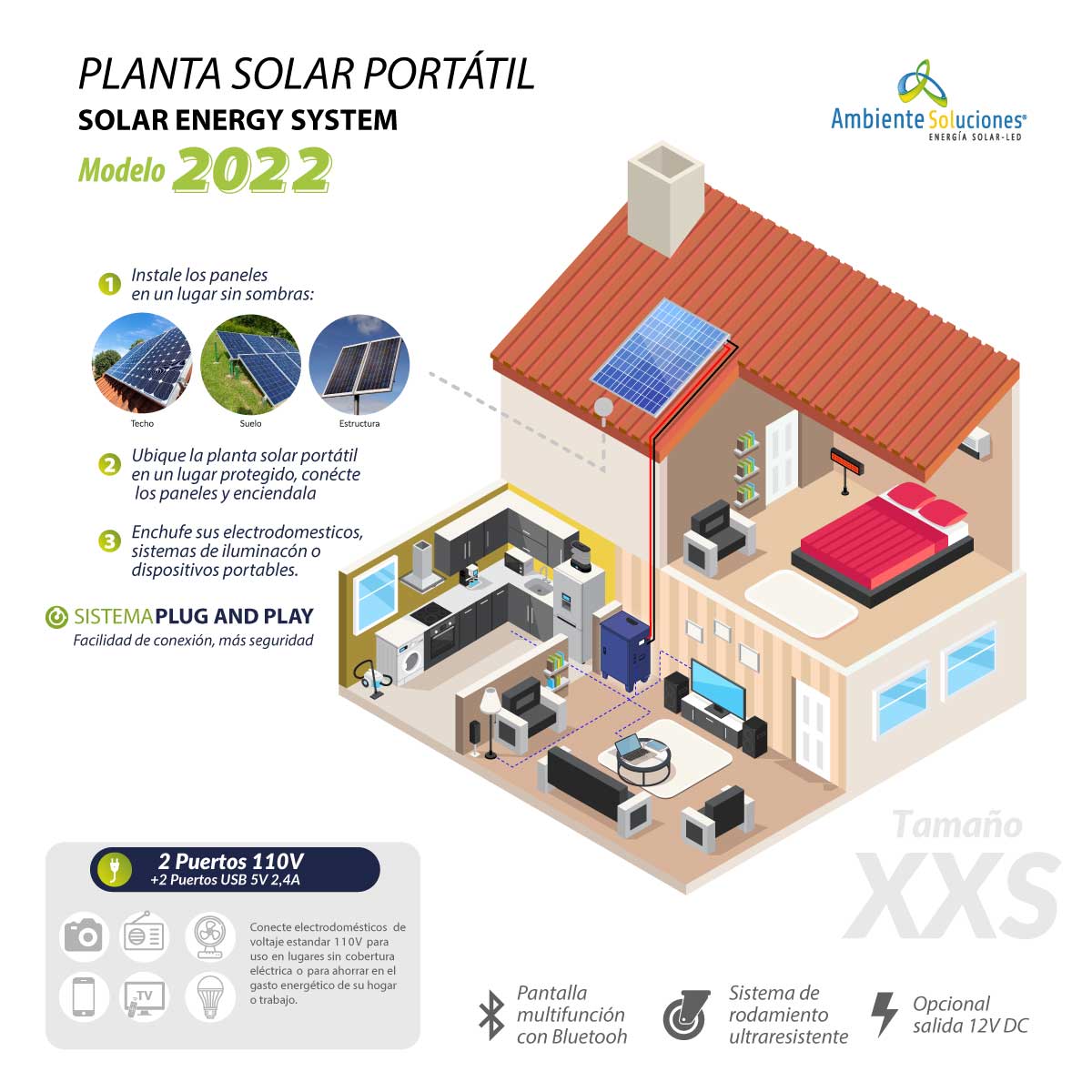 Sistema portátil de energía solar tamaño XXS